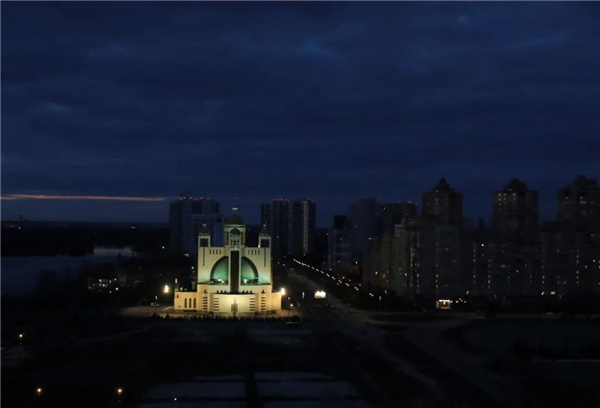 这是2月26日晚拍摄的乌克兰基辅街景。新华社记者 李东旭 摄
