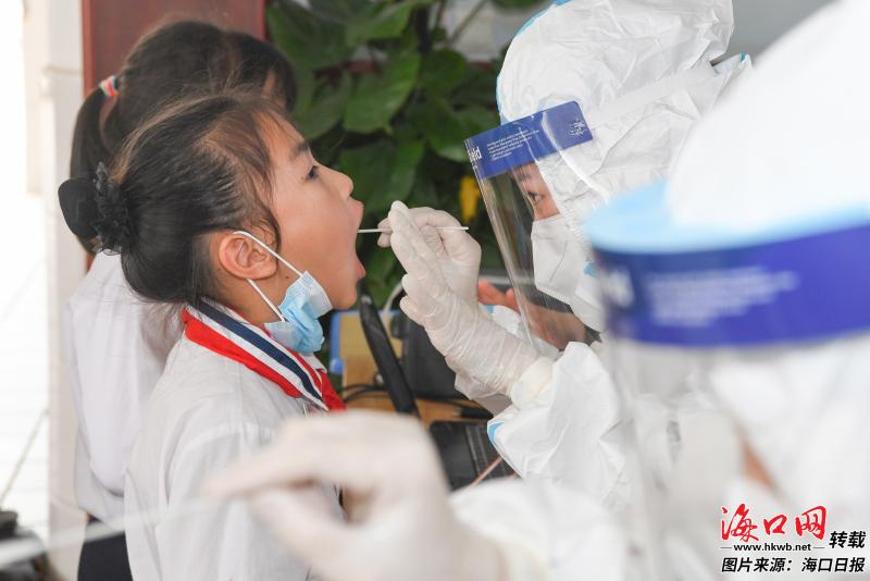 3月7日,海口市港湾小学组织学校师生开展核酸检测抽检工作。