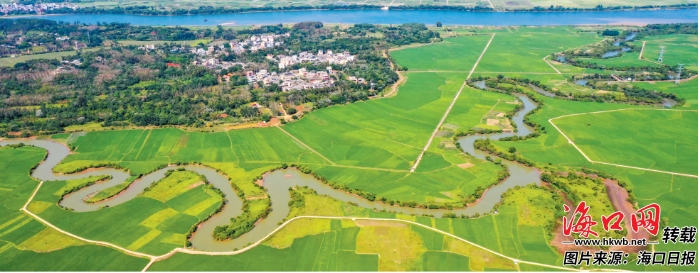 3月8日,俯瞰位于琼山区云龙镇儒林村的三十六曲溪,蜿蜒的河流从绿油油的稻田中穿过,一派春意盎然的景象。 本报记者 康登淋 摄
