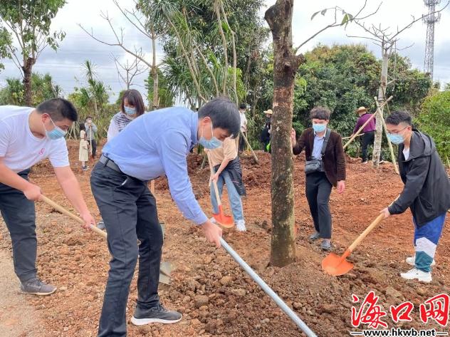 海口网记者在植树现场看到,不少年轻干部们在认真地挥动铁锹、提水浇灌、精心栽种,配合得十分默契。今年29岁的秀英区能力提升年专班综合组成员吕荣凯手拿锄头挥锨填土,身上的衣服已被汗水打湿。吕荣凯说:“参与这个植树活动,对我们年轻干部来说是一个很好的锻炼机会。希望广大年轻干部积极参与到植树活动当中,为保护绿水青山贡献一份力量。”