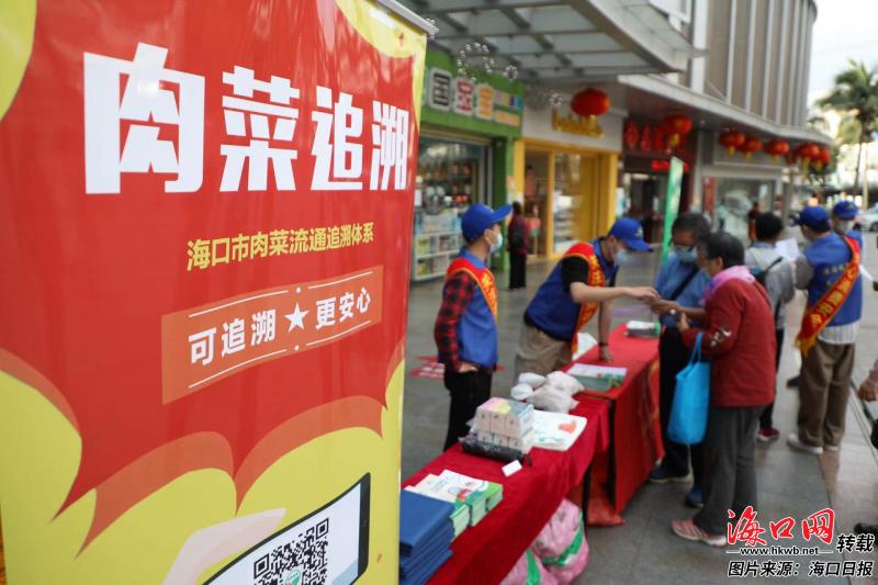 “海口市重要产品追溯体系建设分为几大类?”“海口平价菜有多少个品种?”在现场,志愿者们通过有奖问答等多种形式,为过往市民介绍目前海口市肉菜追溯体系建设以及海口市平价菜管理模块建设等情况,让市民了解农产品从田间到餐桌如何借助肉菜追溯体系建设,实现“舌尖上的安全”,得到了周边居民的积极响应与参与。