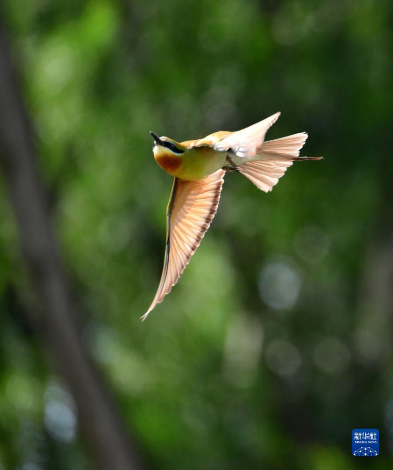 近日,一批栗喉蜂虎飞抵福建省厦门五缘湾栗喉蜂虎自然保护区,开始筑巢繁殖和育雏。栗喉蜂虎是国家二级保护动物,被爱鸟观鸟者称为“最美候鸟”。