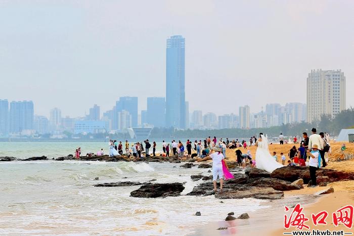市民游客在假日海滩游玩。邵阳 摄