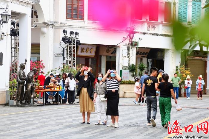 海口网5月4日消息(记者邵阳 摄影报道)4日,海口网记者在骑楼老街、假日海滩、万绿园等地看到,不少市民游客抓住“五一”假期尾巴结伴出行,各景区景点旅游秩序井然,文明旅游成为海口一道美丽风景。