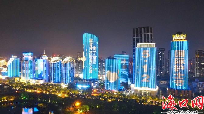 海口滨海大道景观灯为庆祝“5·12国际护士节”亮灯。 邵阳摄