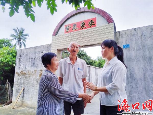 肖海荣(右一)了解村民的生活状况。(美兰区供图)