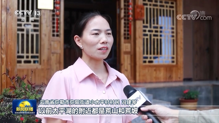 云南省弥勒市弥阳街道小太平村村民 冯建琴:以前太平湖的附近都是荒山和荒坡,一年的收入也只不过是几千块钱,现在我在太平湖上班,家里面又开着民宿,一年收入就达到20多万(元)。