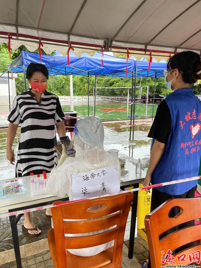 “我们俩来报名加入志愿者队伍。”就读于海南大学的梁菁和海南师范大学的陈晓萍主动请缨参加志愿服务。疫情发生后,琼山区大坡镇党员纷纷响应,抵达点位引导群众有序排队、提醒群众戴好口罩做好安全防护,协助进行核酸信息录入。他们在人群中穿梭,尽显年轻党员不畏困难、无私奉献的精神。