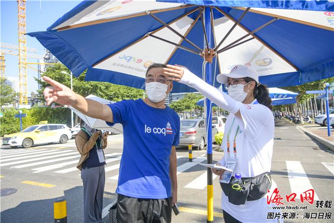 第二届消博会期间,志愿者在场馆附近路口为观展人员指路。 海口日报记者 康登淋 摄