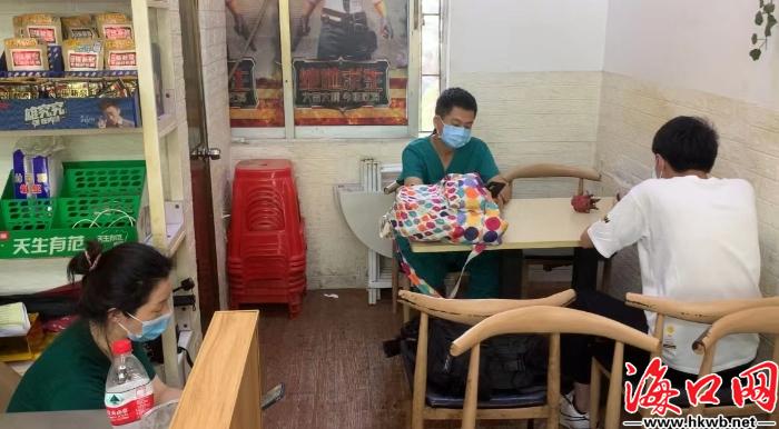 海口网8月12日消息(记者韩俊元)“亲爱的医护人员和志愿工作者们,感谢你们的无私奉献,天气炎热,大家要注意防暑,及时补充水分,欢迎来我们店里休息。”8月12日中午,在位于海口市美兰区海甸三西路的“追茶到底”奶茶店内,交完班的医护人员和社区志愿者正在店内休息。自海口新一轮疫情发生以来,这家奶茶店便成为了附近核酸检测人员和社区志愿者们的“暖心驿站”,店主王先生每天为疫情防控一线的医务人员、志愿者提供免费消暑饮料和休息场所。
