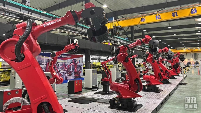 △新松公司生产的工业机器人。(总台央视记者赵化拍摄)