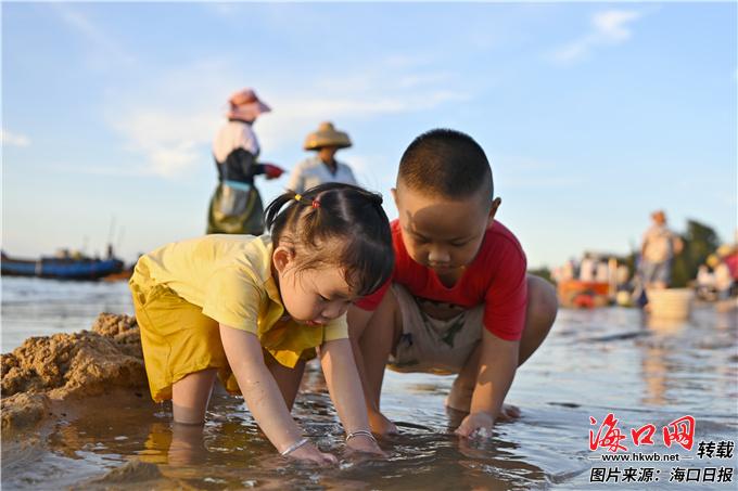 小朋友在西秀镇荣山寮村海边玩耍。 海口日报记者 石中华 摄