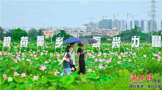 海口江东新区千亩荷塘项目6号地块荷花盛开,吸引游客前来观赏。 海口日报记者 石中华 摄