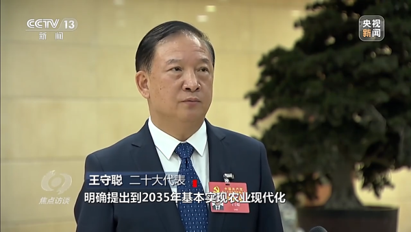 二十大代表 王守聪:党的二十大报告在战略安排中,明确提出到2035年基本实现农业现代化,我们将认真贯彻党的二十大精神,大力提升种业创新和农机高端智能的水平,多种粮、种好粮。
