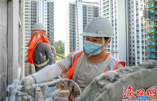 工人正在抓紧施工。(海口江东新区管理局供图)