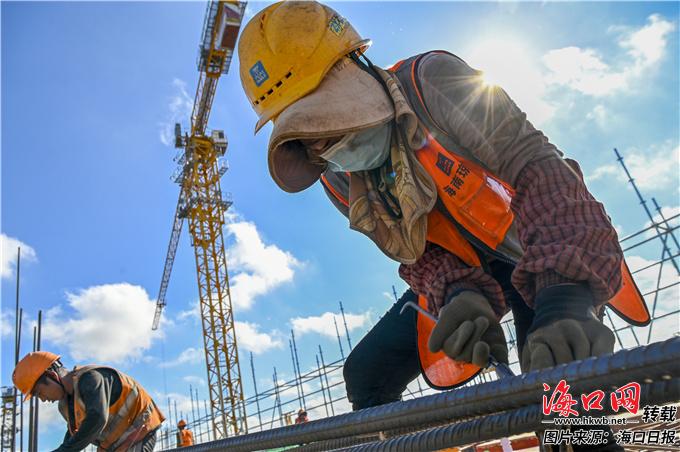 11月29日,海口市人民医院西院项目施工现场,工人正在绑扎钢筋。海口日报记者石中华 摄
