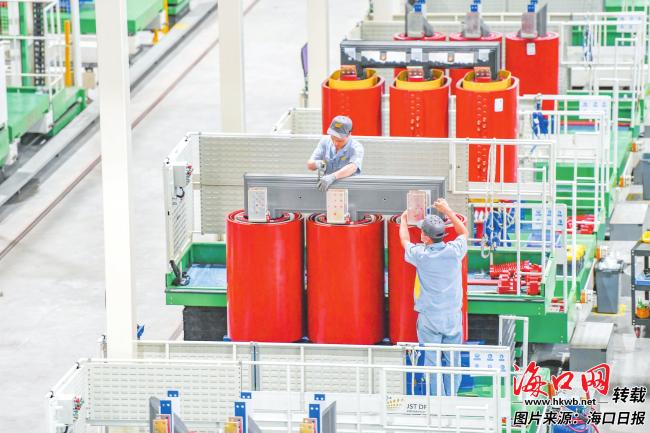 3月9日,在海口综保区金盘科技数字化工厂,工作人员在生产车间调试设备。海口日报融媒体记者 孙士杰 摄