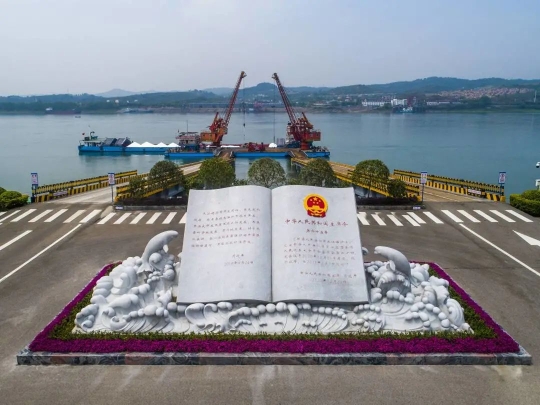 在兴发集团宜昌新材料产业园,江边一块铜铸的圆形地标上,“2018.4.24”几个意义非凡的数字,记录着一场重大转型的开始。这里,是习近平总书记对长江大保护的“立规之地”。