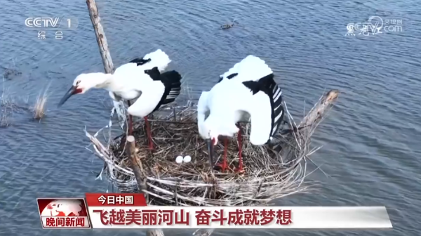 我们跟着二十五万只候鸟,一起飞到黑龙江嘟噜河省级自然保护区,这里现在生活着三百多只国家一级保护动物东方白鹳。这对国宝“夫妻”正在打造新家,迎接自己孩子的诞生。今年,保护区将新生180多只东方白颧。新生,是这片国土永不停息的奏鸣曲。