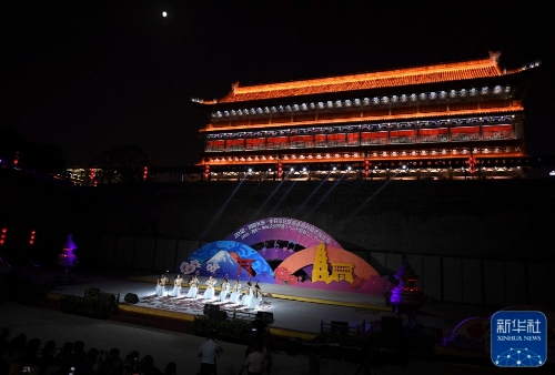 ↑2018年9月22日,在2018·回望长安——中日文化交流活动开幕式音乐会上,中国艺术家在西安明城墙瓮城内演奏乐曲《梦入江南》。新华社记者 张博文 摄