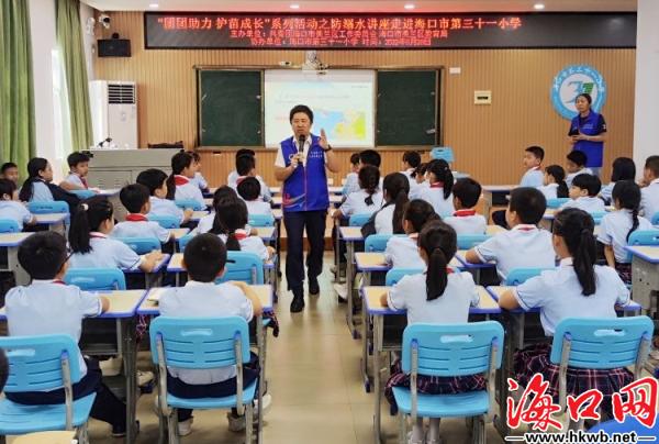 海口网6月28日消息(记者陈捷)6月28日下午,由共青团海口市美兰区委员会 、共青团海口市美兰区教育局工作委员会、少先队海口市美兰区工作委员会联合主办的2023年“团团助力 护苗成长”系列活动之防溺水安全教育走进海口市第三十一小学,为该校学生们带来了一场寓教于乐的防溺水安全教育课程, 进一步加强校园安全教育,帮助广大学生掌握防溺水知识技能。