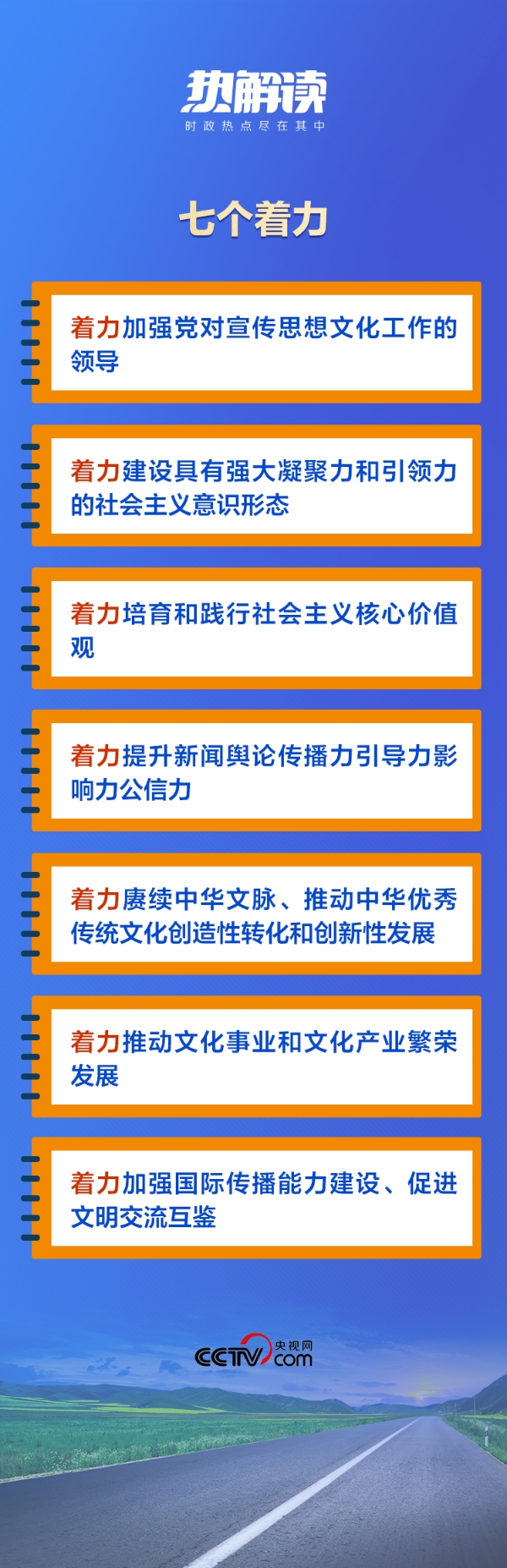 在这次对宣传思想文化工作的重要指示中,总书记提出了“七个着力”的重要要求,为新时代文化建设明确了路线图和任务书。
