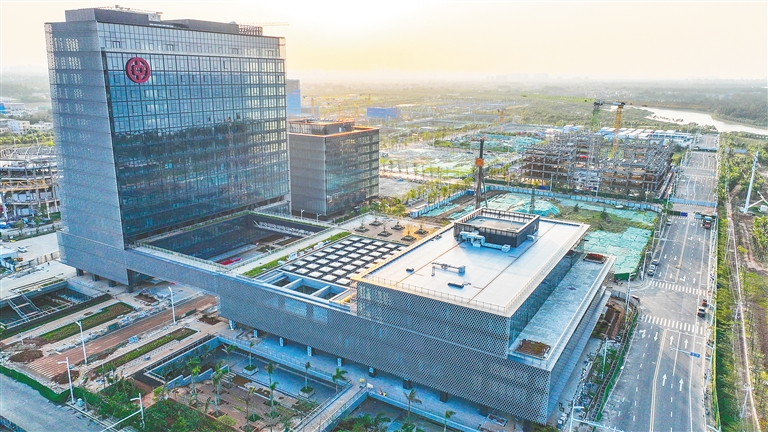 近日,航拍位于海口江东新区总部经济区(生态CBD)的中银海南总部,该项目已进入竣备验收收尾阶段。