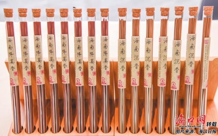 海南沉香降真香研究和试验发展中心展示的线香产品。记者 康登淋 摄