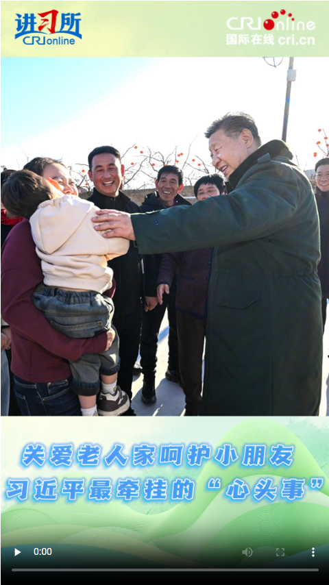 老有所养、幼有所育,一直是习近平主席最牵挂的“心头事”。每到中国地方考察中,习主席总要到基层察看老人们的生活和孩子们受教育的情况。在青海省果洛西宁民族中学学生宿舍和食堂,他嘱咐学校“一定要注意卫生”“让孩子们吃得营养健康”;在湖北省咸宁市嘉鱼县潘家湾镇,他察看养老设施和便民惠民服务情况,叮嘱当地“要抓住‘一老一小’这个重点,更加精准有效地为群众排忧解难”;在辽宁省沈阳市郎素兰老人家中,他仔细询问冬季供暖情况,强调要更好地关心呵护“一老一小”……