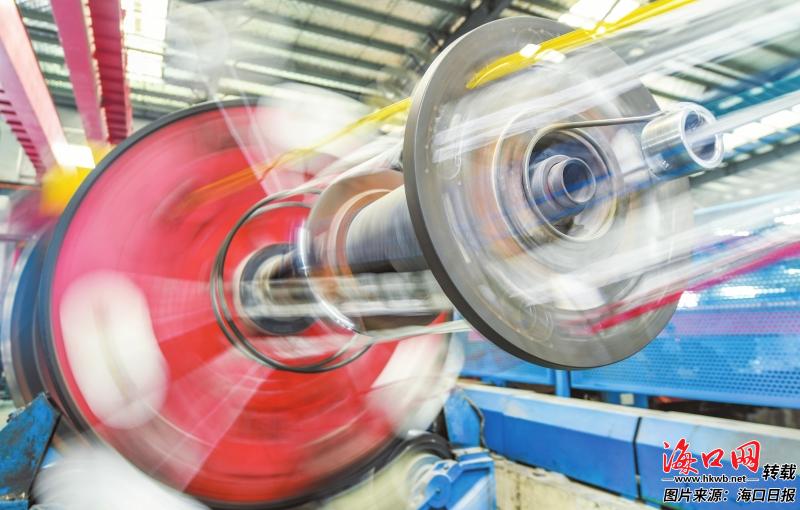 在位于海口国家高新区美安生态科技新城的威特低碳制造产业园电缆车间内,小成缆设备正在全速运转。记者 康登淋 摄