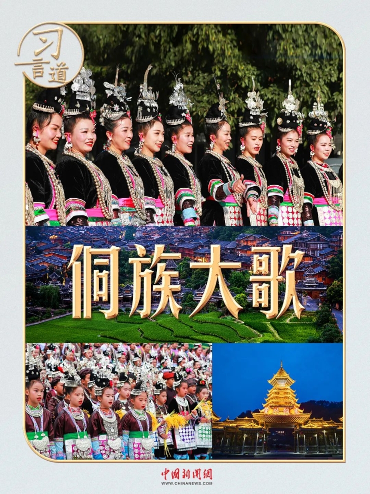 3月17日,习近平总书记来到贵州黎平县肇兴侗寨考察,同乡亲们亲切交流。身着民族盛装的村民,唱起了世代相传的侗族大歌。