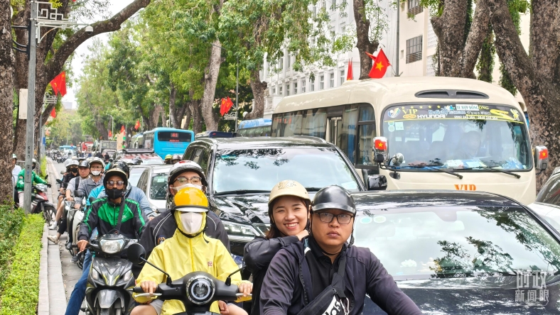 △ 河内街道上民众们手执两国国旗。(总台国广记者吴倩拍摄)