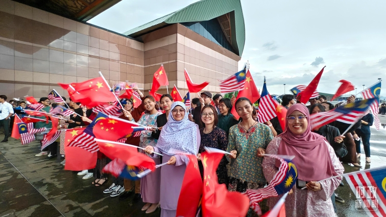 △ 迎接习近平主席的马来西亚当地人群。(总台央视记者韩锐拍摄)