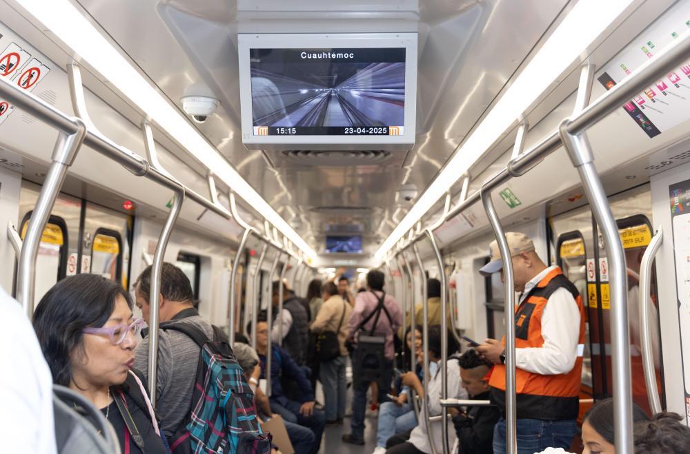 △2025年4月,人们在墨西哥首都墨西哥城乘坐地铁新1号线列车。
