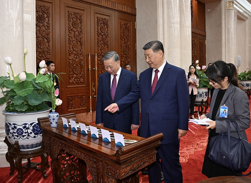 2024年8月,越共中央总书记、国家主席苏林访华,习近平总书记在北京人民大会堂同他举行小范围茶叙,在亲切友好的氛围中就共同关心的重要问题继续进行深入交流。