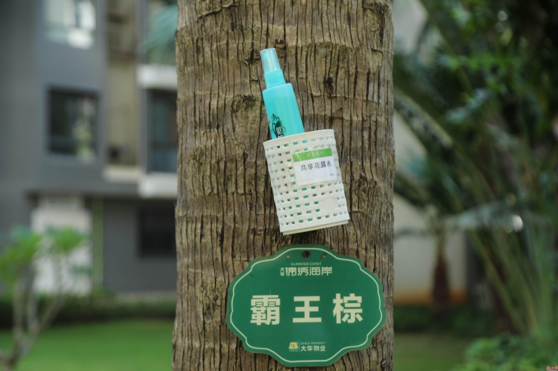 小区公共空间准备了防蚊花露水。(秀英区供图)