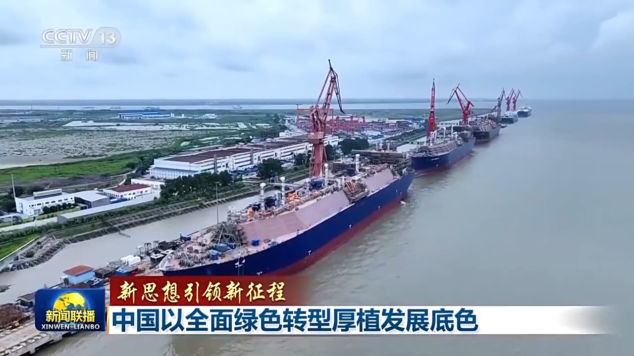 上海长兴岛,三大船厂生产线昼夜不息。今天,“绿色船舶中国造”已经成为了船舶市场上的新趋势,中国新接绿色动力船舶订单占国际市场份额从2021年的31.5%增长至2024年的78.5%。