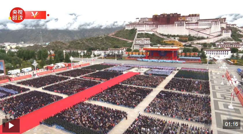 21日上午,习近平总书记在拉萨市布达拉宫广场出席西藏自治区成立60周年庆祝大会,同西藏各族各界干部群众约2万人共同欢聚,热烈庆祝西藏自治区成立60周年。