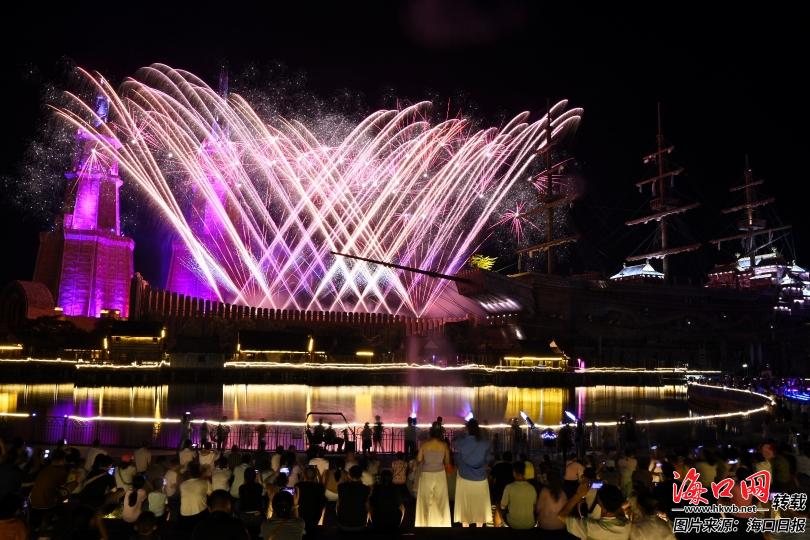 国庆中秋假期,海南长影奇幻乐园绚丽多彩的烟花秀吸引众多游客前来观赏。记者 石中华 摄