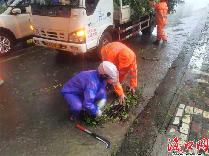 与此同时,秀英区秀英街道行政执法中队主动作为、冲锋在前,连夜作战,中队全体工作人员在街道辖区内开展排查广告招牌隐患、清理枝叶畅通排水口等工作,用行动筑牢群众安全防线。