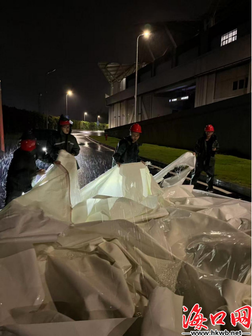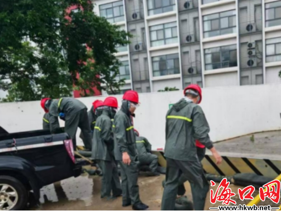 金盘片区救援队紧急开展防汛加固工作。(海口综保区供图)