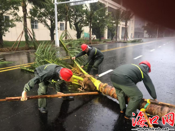 老城片区救援队及时清理倒伏阻断交通树木。(海口综保区供图)