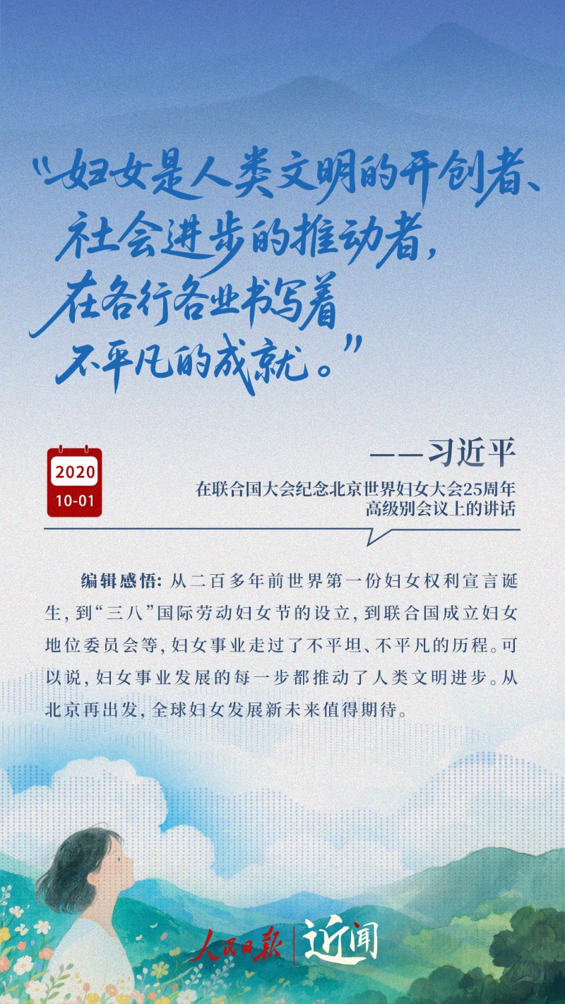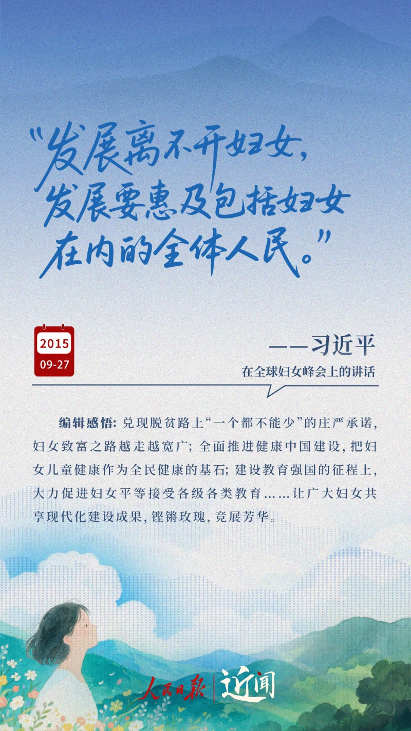 “妇女能顶半边天。这句话说得何等豪迈啊!”“新征程上,每一位妇女都是主角,都享有人生出彩的机会。”“让每个妇女和儿童都沐浴在幸福安宁的阳光里。”一次次暖心寄语,饱含着习近平总书记对妇女全面发展的关心关怀。