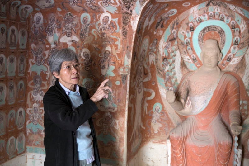 敦煌研究院名誉院长樊锦诗在敦煌莫高窟(2015年9月29日摄)。樊锦诗视敦煌石窟的安危如生命,扎根大漠,潜心石窟考古研究,带领团队致力于世界文化遗产的保护传承。她在全国率先开展文物保护专项法规和保护规划建设,探索形成石窟科学保护的理论与方法,为世界文化遗产敦煌莫高窟文物和大遗址保护传承与利用作出突出贡献,被誉为“敦煌的女儿”。