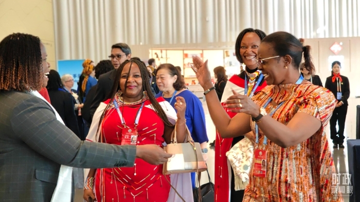 △出席全球妇女峰会开幕式的外方代表。(总台央视记者程铖拍摄)