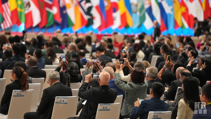 △出席全球妇女峰会开幕式的外方代表。(总台央视记者赵化拍摄)
