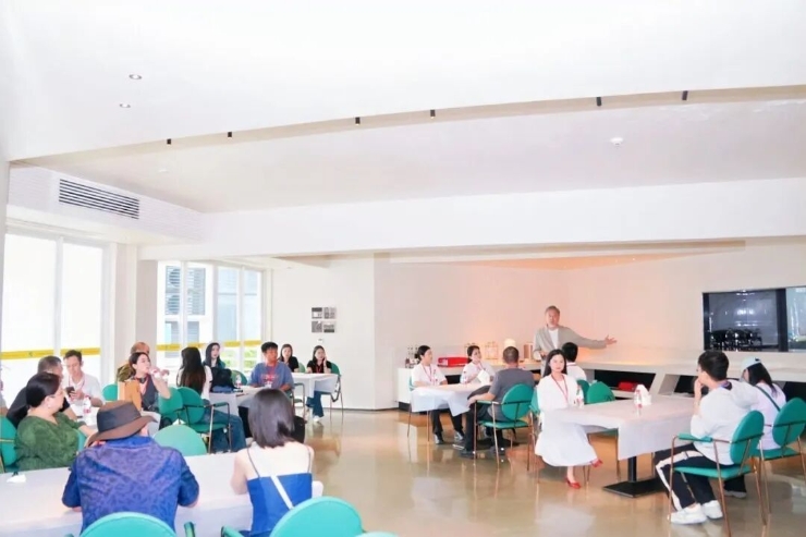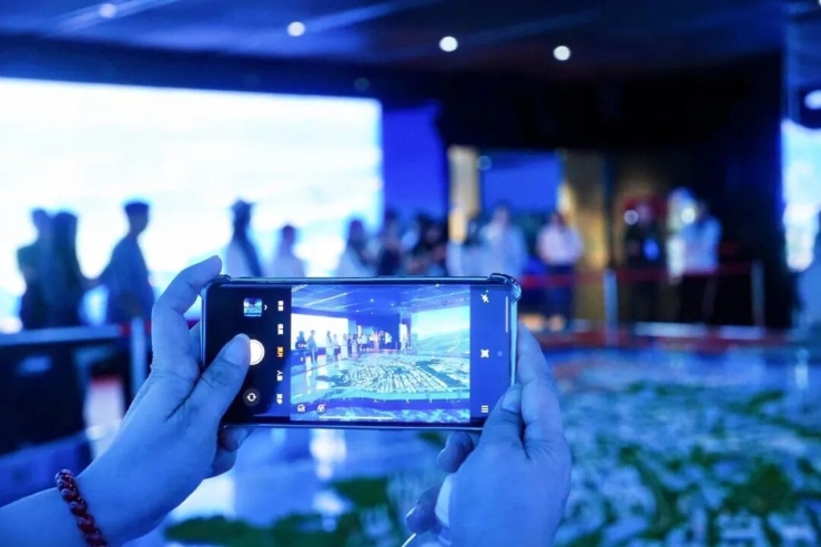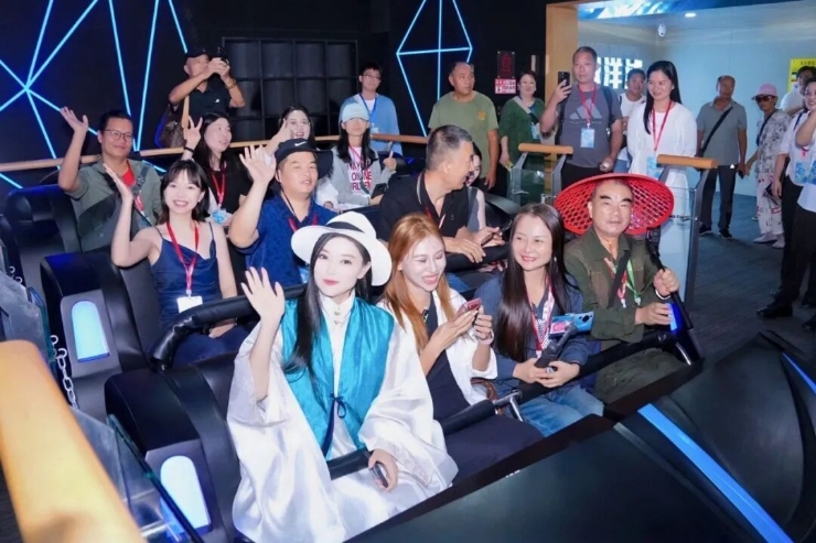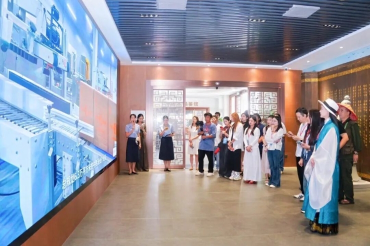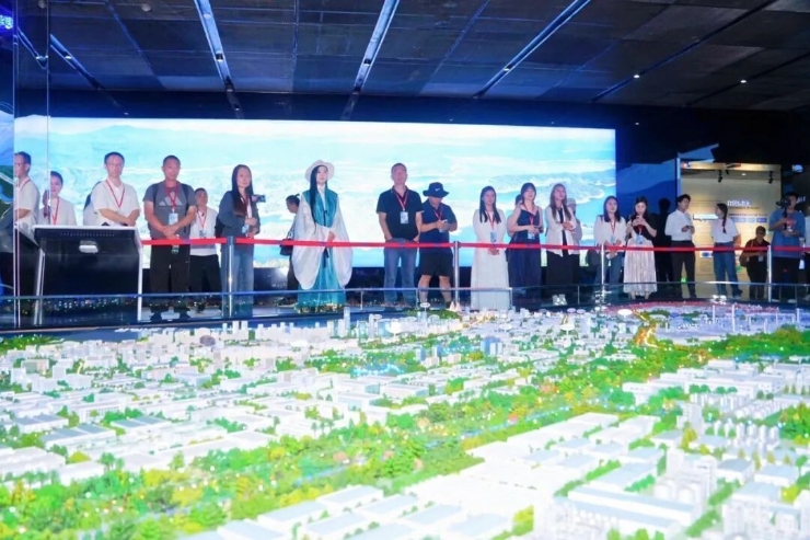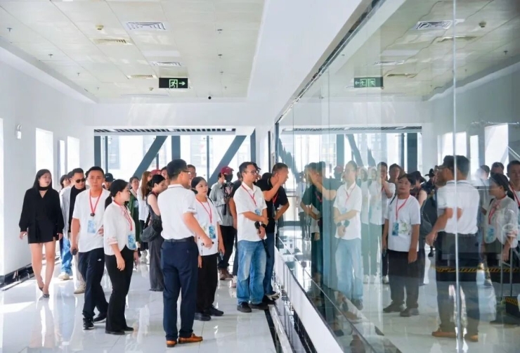 采风团的首站来到了洋浦展示馆,从宏观视角开启了对这片发展热土的探索。馆内详实的数据、宏伟的规划蓝图,系统展示了儋州奋力打造海南自贸港"样板间"的战略布局与丰硕成果。尤其是在飞行影院,当巨幕铺展开环新英湾的壮阔全景时,成员们仿佛插上翅膀,高空俯瞰繁忙的港口、林立的厂房与蜿蜒的海岸线,沉浸式的体验引来阵阵惊叹,为大家的深度探访拉开了精彩的序幕。