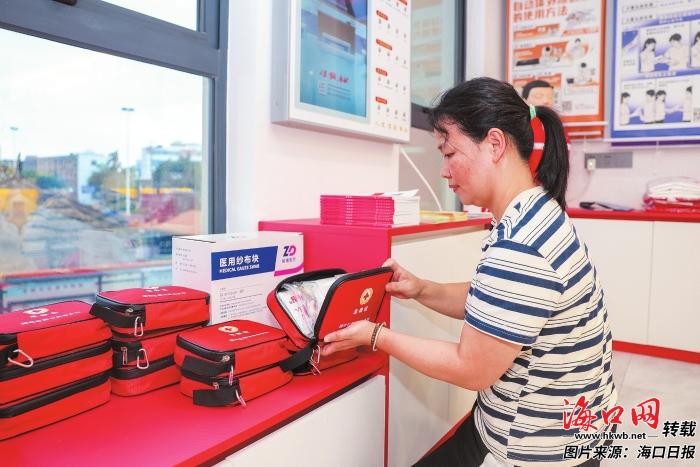 在位于龙岐社区的红十字急救安全屋内,工作人员正在整理急救物资。记者 苏弼坤 摄
