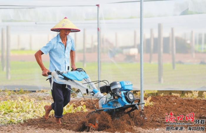 10月18日,在美兰区灵山镇群山常年蔬菜基地,菜农对刚刚采收完的菜地进行重新耕种。 记者 杨忠凯 摄