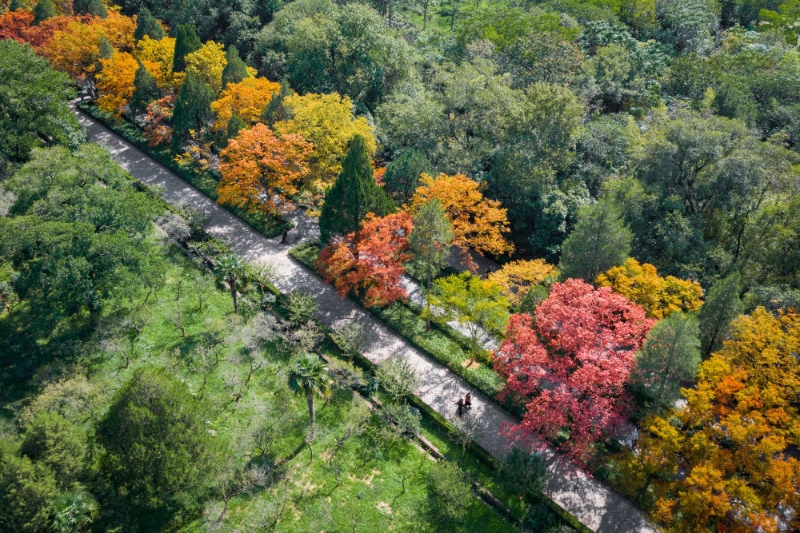 10月23日,游客在江苏南京明孝陵景区石象路观赏秋景(无人机照片)。 新华社发(苏阳 摄)